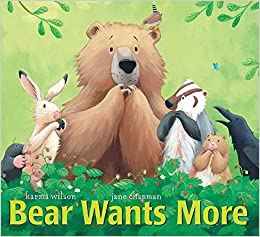 Bear Wants More: Bear finds some roots to eat, but that's not enough. He wants more! With his friends' help, he finds some berries, clover, and fish to eat, but that's not enough. Bear wants more! How Bear's friends help him to finally satisfy his HUGE hunger in a most surprising way will enchant young readers.