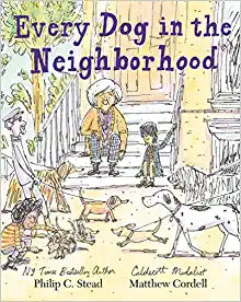 Every Dog in the Neighborhood: Louis really wants a dog, but his Grandma insists, "There are enough dogs in the neighborhood already." While Louis disagrees, he realizes he needs more information to support his argument: so he sets out to figure out how many dogs live in the neighborhood. While Grandma sets out on errands of her own, Louis starts knocking on doors. He meets big dogs and little dogs, dogs with jobs, dogs who eat socks, and dogs who are much missed. (He also meets cats, and birds, and one very big python, but those don't count!) By the time he gets home Louis is ready to tell Grandma just how many dogs are in the neighborhood. . . . But Grandma thinks he just might have missed one. A particularly loveable dog. A dog who needs a new home. Maybe there are enough dogs in the neighborhood after all.