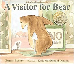 A Visitor for Bear: Cheery persistence wears down a curmudgeonly bear in a wry comedy of manners that ends in a most unlikely friendship. Bear is quite sure he doesn't like visitors. He even has a sign. So when a mouse taps on his door one day, Bear tells him to leave. But when Bear goes to the cupboard to get a bowl, there is the mouse -- small and gray and bright-eyed. In this slapstick tale that begs to be read aloud, all Bear wants is to eat his breakfast in peace, but the mouse -- who keeps popping up in the most unexpected places -- just won't go away!