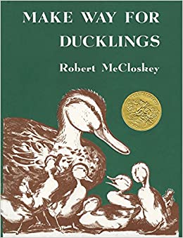 Make Way for Ducklings: Mrs. Mallard was sure that the pond in the Boston Public Gardens would be a perfect place for her and her eight ducklings to live. The problem was how to get them there through the busy streets of Boston. But with a little help from the Boston police, Mrs. Mallard and Jack, Kack, Lack, Nack, Ouack, Pack, and Quack arrive safely at their new home.