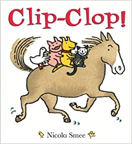 Clip-Clop!: Every child adores getting twirled and tossed by Mommy and Daddy. Again! Again, they squeal. That's the rapturous joy Nicola Smee captures, in simple rhythmic text and charming pictures. One after the other, a group of barnyard friends climb aboard Mr. Horse for a ride. Faster, they beg...faster! But will "faster" lead to disaster? No...just a satisfying ending that toddlers will love.