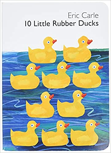 10 Little Rubber Ducks: "Ducks overboard!" shouts the captain, as a giant wave washes a box of 10 little rubber ducks off his cargo ship and into the sea. The ducks are swept away in various directions. One drifts west, where a friendly dolphin jumps over it. A whale sings to another. But as the sun sets, the 10th little rubber duck is left all alone, bobbing helplessly on the big wide sea. Small readers and listeners will empathize with the little duck's plight--and will rejoice at the heartwarming surprise ending.