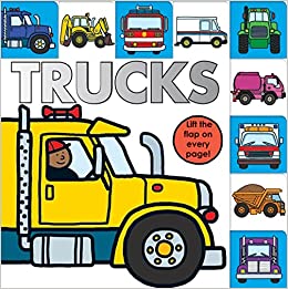Trucks: From a digger to a dump truck, a fuel truck to a fire engine, this is a colorful collection for all little fans of big trucks. The black outline illustrations have card flaps to lift which reveal what's going on inside the trucks, and the simple text explains each one's special job.