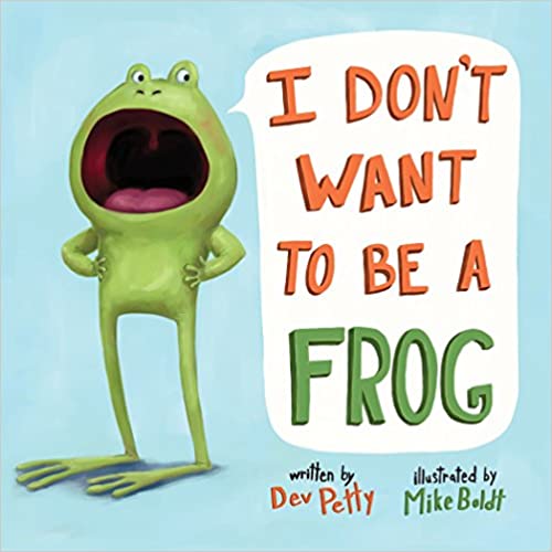 I Don't Want to Be a Frog!: Frog wants to be anything but a slimy, wet frog. A cat, perhaps. Or a rabbit. An owl? But when a hungry wolf arrives—a wolf who HATES eating frogs—our hero decides that being himself isn’t so bad after all. In this very silly story with a sly message, told in hilarious dialogue between a feisty young frog and his heard-it-all-before father, young children will identify with little Frog’s desire to be something different, while laughing along at his stubborn yet endearing schemes to prove himself right.