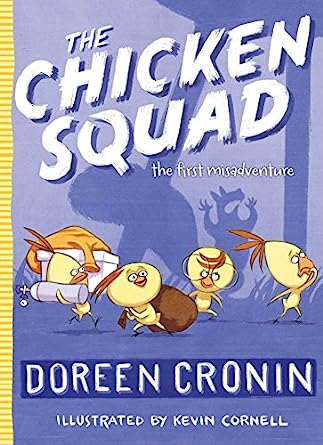 Meet the Chicken Squad: Dirt, Sugar, Poppy, and Sweetie. These chicks are not your typical barnyard puffs of fluff, and they are not about to spend their days pecking chicken feed and chasing bugs. No sir, they’re too busy solving mysteries and fighting crime. So when Squirrel comes barreling into the chicken coop, the chicks know they’re about to get a case. But with his poor knowledge of shapes (“Big” is not a shape, Squirrel!) and utter fear of whatever it is that’s out there, the panicky Squirrel is NO HELP. Good thing these chicks are professionals. But even professionals get worried. Especially once they see that round, shiny, green, BIG thing in the yard. What if it’s a UFO full of aliens who want chickens as pets, or worse, dinner? It’s up to the Chicken Squad to crack a case that just might be out of this world. 112 pages
