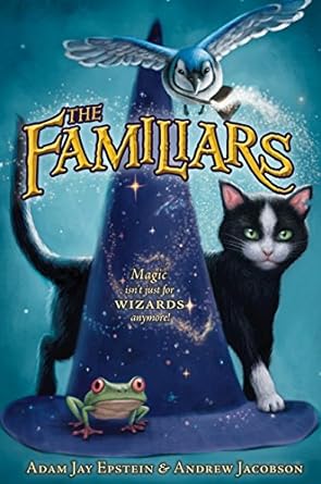 THE FAMILIARS are the magical animal companions to a wizard or witch. When three young wizards-in-training get kidnapped by the evil queen of the land, it is up to their familiars to go a dangerous journey to rescue them. You'll meet Aldwyn, an orphan alley cat pretending to have telekinesis; Skylar, a know-it-all blue jay who can cast illusions; and Gilbert, a hapless tree frog with the ability to see visions of the future in pools of water. See what happens when these three animal assistants -- typically relegated to the background or found sitting quietly on their wizard's shoulders -- go on a heroic adventure of their own! 386 pages